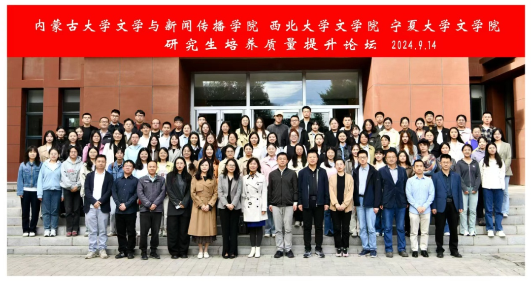 2024年9月14日,我院联合内蒙古大学文学与新闻传播学院、西北大学文学院,在内蒙古大学南校区卓越楼一楼新闻演播大厅成功举办了“研究生培养质量提升论坛”。本次论坛旨在深化学术交流,促进西北地区高校的联合与发展,提升研究生培养质量。