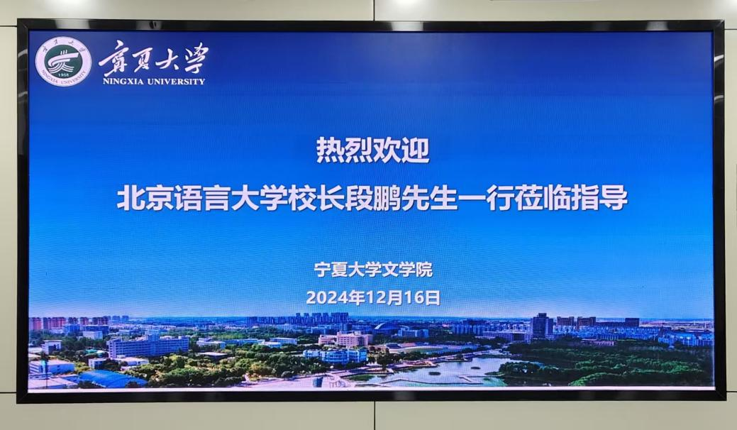 12月16日下午,北京语言大学校长段鹏教授一行到文学院调研指导工作。宁夏大学副校长李学斌、副校长聂丹陪同调研。段鹏一行在怀远楼422成果展示暨学术研讨室参观了文学院的学术成果展示,对文学院师生的科研成果、学术著作以及师生赛事奖项等表示赞赏。胡玉冰院长介绍了国家社科基金重大项目《朔方文库》的编纂情况。段鹏校长对“《朔方文库》编纂”结题鉴定等级为“优秀”表示祝贺,并与在场的文学院教师进行了深入的探讨与交流。
