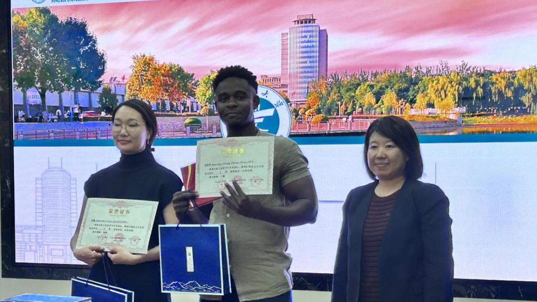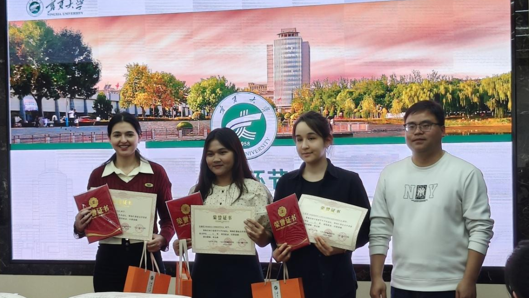 经过紧张的分数汇总与奖项评选,结果最终揭晓:宁夏大学文学院乌兰格(蒙古)荣获一等奖,姆西罗(赤道几内亚)、张娜(俄罗斯)获得二等奖,倪思琳(摩洛哥)、许燕美(印度尼西亚)、王爱莎(土库曼斯坦)斩获三等奖,陶氏玄(越南)、艾小美(吉尔吉斯斯坦)、闫敏(埃及)、艾琳(吉尔吉斯斯坦)、甜甜(埃及)获得优秀奖。三位评委老师和国际中文教育系闫慧颖老师为获奖者颁发了荣誉证书和奖品,这不仅是对获奖留学生学术成果的认可,更是对他们努力付出的鼓励。