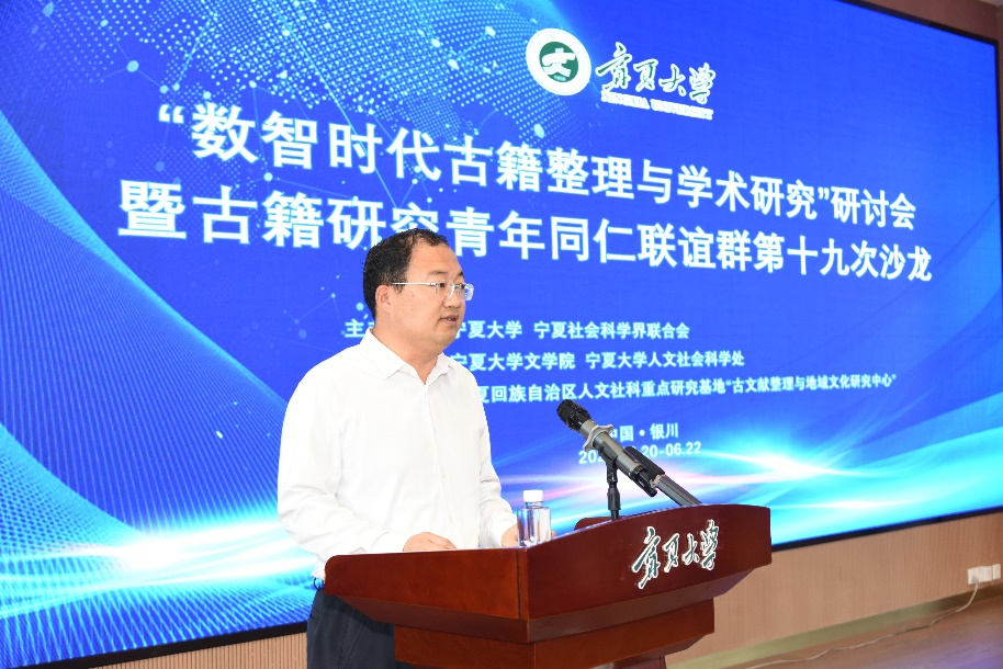 2025年6月20日至22日,“数智时代古籍整理与学术研究”研讨会暨古籍研究青年同仁联谊群第十九次沙龙在宁夏银川市成功举行。本次研讨会由宁夏大学、宁夏社会科学界联合会主办,宁夏大学文学院、宁夏大学人文社会科学处、自治区人文社科重点研究基地“古文献整理与地域文化研究”联合承办。来自北京大学、中国科学院、北京外国语大学、山东大学、华中师范大学、吉林大学、河北大学、辽宁大学、泰州学院、国家图书馆、南京图书馆、广西师范大学出版社、浙江大学出版社以及宁夏大学等高校、科研院所、出版社等单位的80多位古籍研究青年同仁及在读博士、硕士研究生参加了本次学术会议。新华社、光明日报、宁夏日报、中国社会科学报等中央和地方媒体对研讨会进行了专题采访报道。