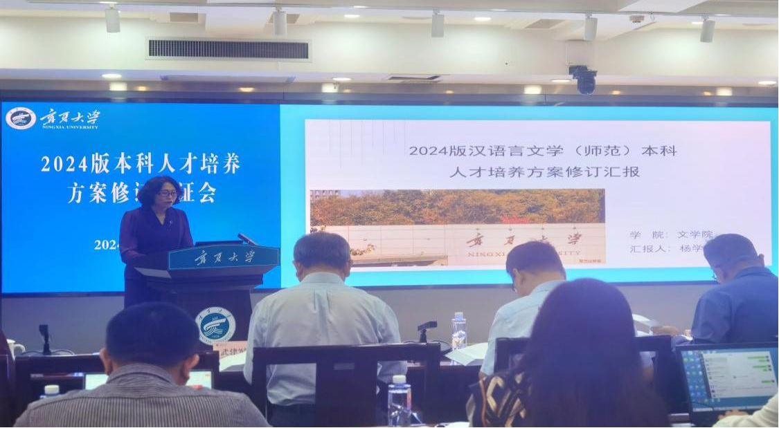 论证会前,学院高度重视培养方案的外审工作,来自清华大学、上海交通大学、南京大学、西安交通大学、华东师范大学、兰州大学、陕西师范大学、福建师范大学、西北师范大学等多所知名高校的专家学者共同为文学院的人才培养方案献计献策。9月25日下午,杨学娟副院长就人才培养方案的修订理念、调研情况、课程体系、对标专业质量标准及认证情况进行全校汇报,展示了文学院在人才培养领域的独特实践与深刻思考。随后,现场与会专家围绕汇报内容展开了广泛而深入的讨论,讨论内容覆盖课程体系的合理性与前瞻性、实践环节的强化与拓展、评估机制的完善与创新等多个方面。专家们一致认为,文学院本科人才培养方案在设定培养目标时,既体现了对学生全面发展的深切关怀,又紧密对接了社会与行业对人才的需求;在课程体系构建上,能够对标国家质量标准及师范专业认证标准,为学生搭建宽广而深厚的知识框架,展现出科学性与系统性。同时,专家们也提出了宝贵的改进建议,鼓励文学院进一步对标新文科建设的时代要求,积极引入跨学科、前沿性课程,以此推动课程体系的持续优化与创新。